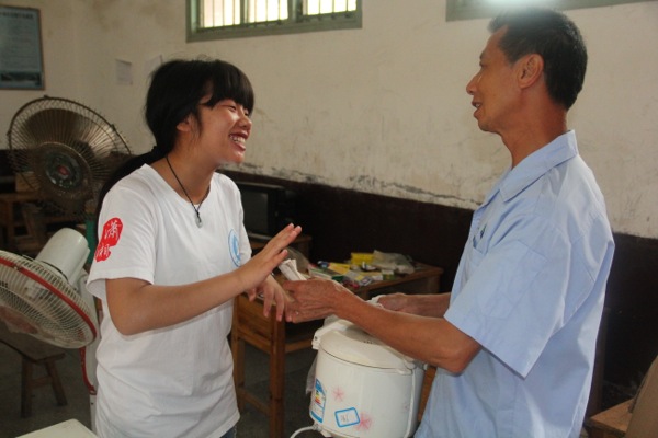 上午10:30,一位老爷爷上门约修,志愿者余兆与刘俊江二话不说,提着配件和工具箱就出发了。先后帮助村民维修好了电风扇和洗衣机。修理洗衣机是件不容易的事,首先用螺丝刀将控制面板拆开,随后用万用表测量线路电容,经过一番尝试后最终将问题定在排水开关上。经过一个上午的忙碌,洗衣机的排水问题终于得以解决。为表示感谢,老人一家想邀请吃午饭,却被他们婉言谢绝。“这种情况时有发生,可都被我们谢绝了。”志愿者刘俊江笑着说。回到服务点,吃着其他成员为他们留下的饭菜,两人额外的满足。