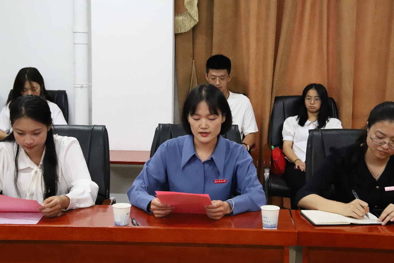 活动伊始,禹旭才介绍”一本式“学生教育管理模式的实施是基于人才培养质量必须持续提升这一教育理念,源于学生教育管理必须持续优化这一目标追求。她强调实施“一本式”学生教育管理的着眼点是提升学院的人才培养质量,其目的是要培养潇湘学子具有一流的国际视野、一流的专业能力与一流的综合素养,全面提升潇湘学子的“出口”质量;出发点是优化学院学生的日常管理,以“大学故事”为载体优化细化学生日常管理,突破重点难点工作;着力点是倾心写好师生的“大学故事”,通过叙述一个个鲜活故事,书写一段段心路历程,纪实教师与学生的心灵对话,表达老师们对学生的殷殷关怀。最后她希望全体师生上下一心、同频共振,推动“一本式”教育管理走深走实,走出成效,走出特色。